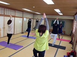 青森市内、アピオ青森、西部市民センターでレッスンを行っているヨガ教室です!ダイナミックなアーサナにもチャレンジするクラスでは、男性もしっかりと汗をかいていますよ!