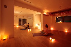 漆喰の美しい壁、天然木材のぬくもりある床、揺れるキャンドルの灯。一つ一つに思いが込められたスタジオは、なんと代表であるSATORUさんの手作りの空間です!ヨガへの熱い思いとその行動力にみんなが魅了されていますよ!