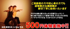 - リラックスヨガ、ハタヨガ、アロマヨガ、ビューティーヨガ、リンパデトックスヨガ...etc