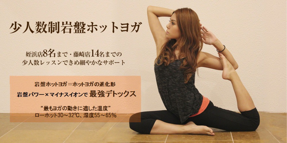 ローホット(室温30〜32℃)スタジオなので体の心から温められる 岩盤ホットヨガなので、体の柔軟性が高まる、マイナスイオンが発生し、美肌効果
