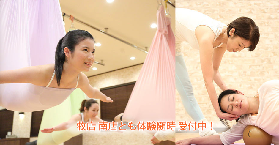 大分市牧にあるヨガ・ピラティススタジオは、定員12名の少人数制で行います。ヨガやピラティス、エアリアルヨガ、コンディショニングなど多くのプログラムを用意。スタジオの隣には、リンパマッサージのサロンが併設されているので、ヨガとマッサージで究極の癒しが体験できます。設備も整っているので、女性から人気!体験レッスンは1,000円とリーズナブルな価格で参加できます。※エアリアルヨガの体験レッスンは3,000円