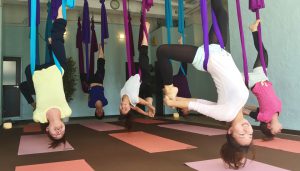 鹿児島初となる空中ヨガスタジオ。布で体重と重力をサポートしてくれるので、身体が硬い人や初心者でも関節や背骨に負担をかけることなく、ヨガをすることができます。布に包まれる圧のマッサージ効果や、リラックス効果、ゆったり感は虜になります。