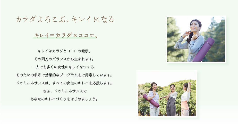 ホットヨガ、リンパヨガ、美脚ヨガ、ピラティス、瞑想などの基本プログラムだけでなく、新感覚のスクリーンヨガや、ハンモックヨガなど多数。 - 女性に嬉しいおしゃれで清潔なスタジオ