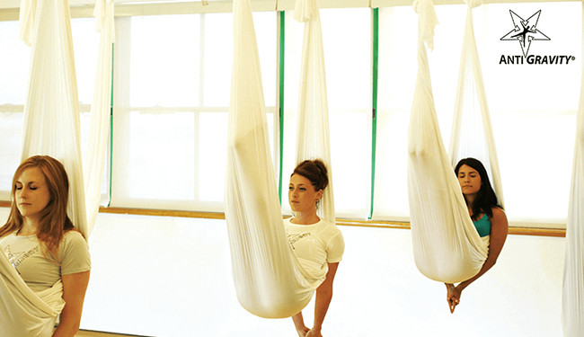 ヨガの種類はリラックスヨガ、パワーヨガなど基本的なプログラムがあることはもちろん、最近話題の「AntiGravity」があります!「AntiGravity」とはハンモックを利用し、空中で行うヨガです。