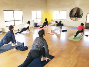 初心者から妊婦、産後、更年期、老年期の方と幅広い年齢層が通うヨガ教室“MANAYOGA in Tokushima”は、徳島市上八万町コミュニティセンター2階和室にて開講しています。
