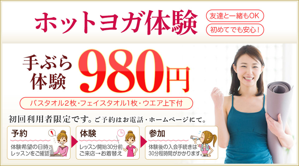ヨガマットレンタルの付いたビジター料金があります。2800円(税抜)で体験した後に、当日入会をするとビジター料金がキャッシュバックになりますよ!