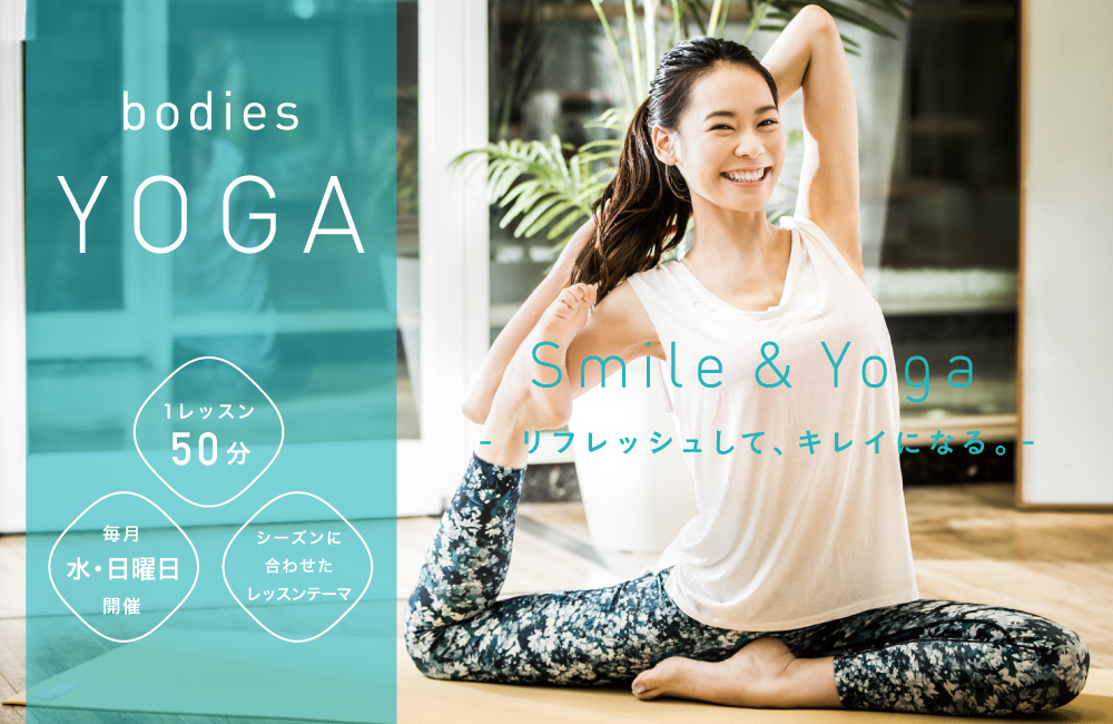 サーキットトレーニングで有名なボディーズでヨガのレッスンが受けられます!水・日にレッスンがあります。月がわりでシーズンに合わせたテーマで実施されるので、次はどんなレッスンなんだろう?と毎月楽しみになりますね。