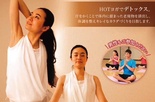 40分間のヨガプログラムから、 アロマを焚いて身体の内面から美しさを引き出す「美メディテーションヨガ」 慣れてきた方へオススメの「パワーヨガ」 ホットヨガ(室温32℃~34℃)などのプログラムがあります。