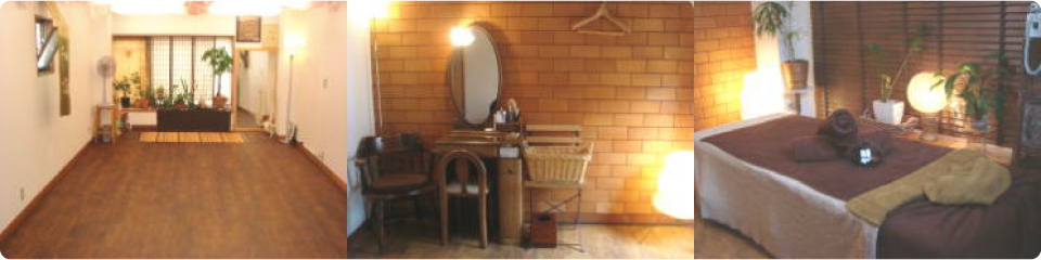 りらく洞ゆうなはヨガ教室と美容整体が一体となったスタジオ「なお」と、フェイシャルやアロマボディの施術が受けられるエステルーム「ゆかり」が併設されています。