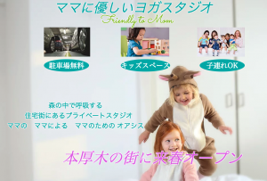 本厚木駅より徒歩5分の場所にあるヨガスタジオです。「お子さんと安心して通えるヨガスタジオがいい!」という方におすすめのスタジオです。
