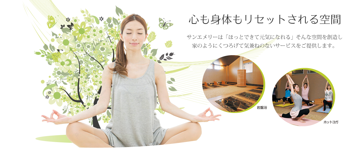 サンエメリーは岩盤浴もホットヨガも楽しめる施設です。高松市木太町2699-1に位置します。