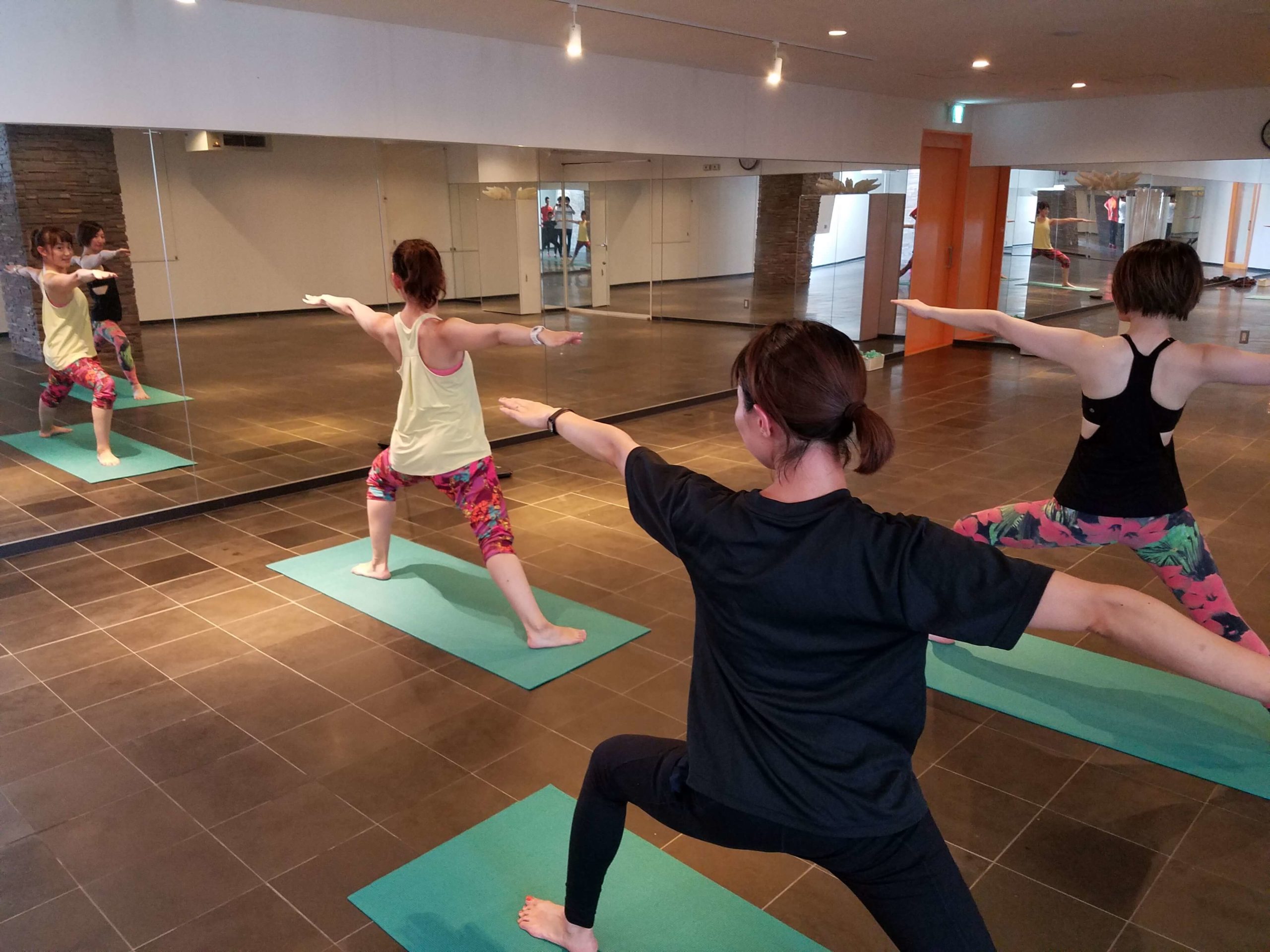 今回のレッスンは、「やすらぎヨガ」でした!担当のインストラクターは、MAKOTOさんという女性の先生でしたが、