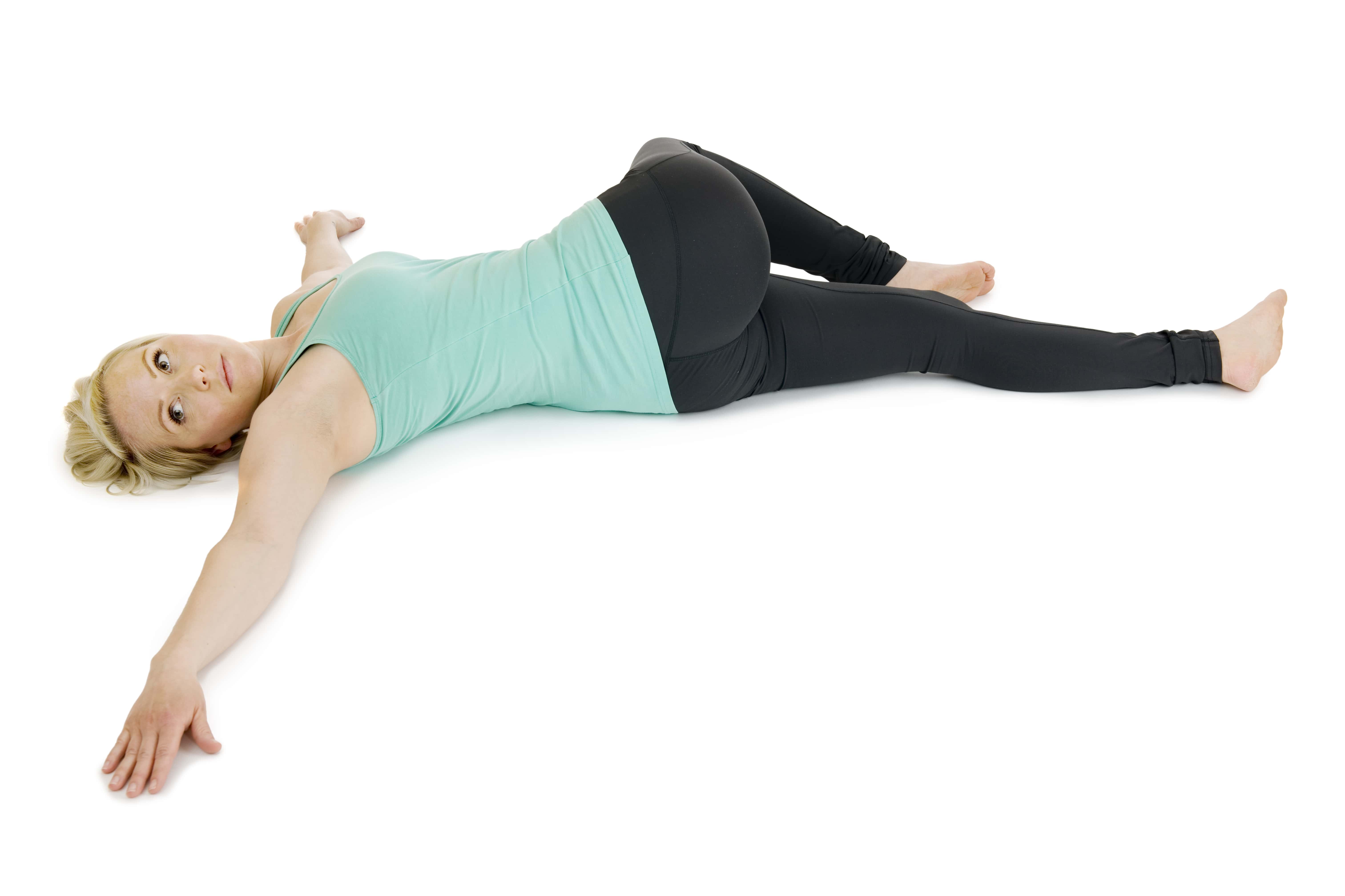 5.手と足をほどいて、楽に仰向けで横たわったまま、しばしの間リラックスした時間を感じましょう