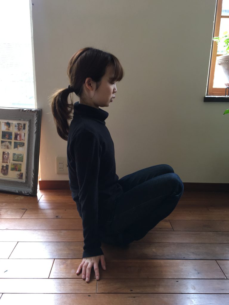 ・目をつぶりましょう。膝と膝の間は少し開きます。
