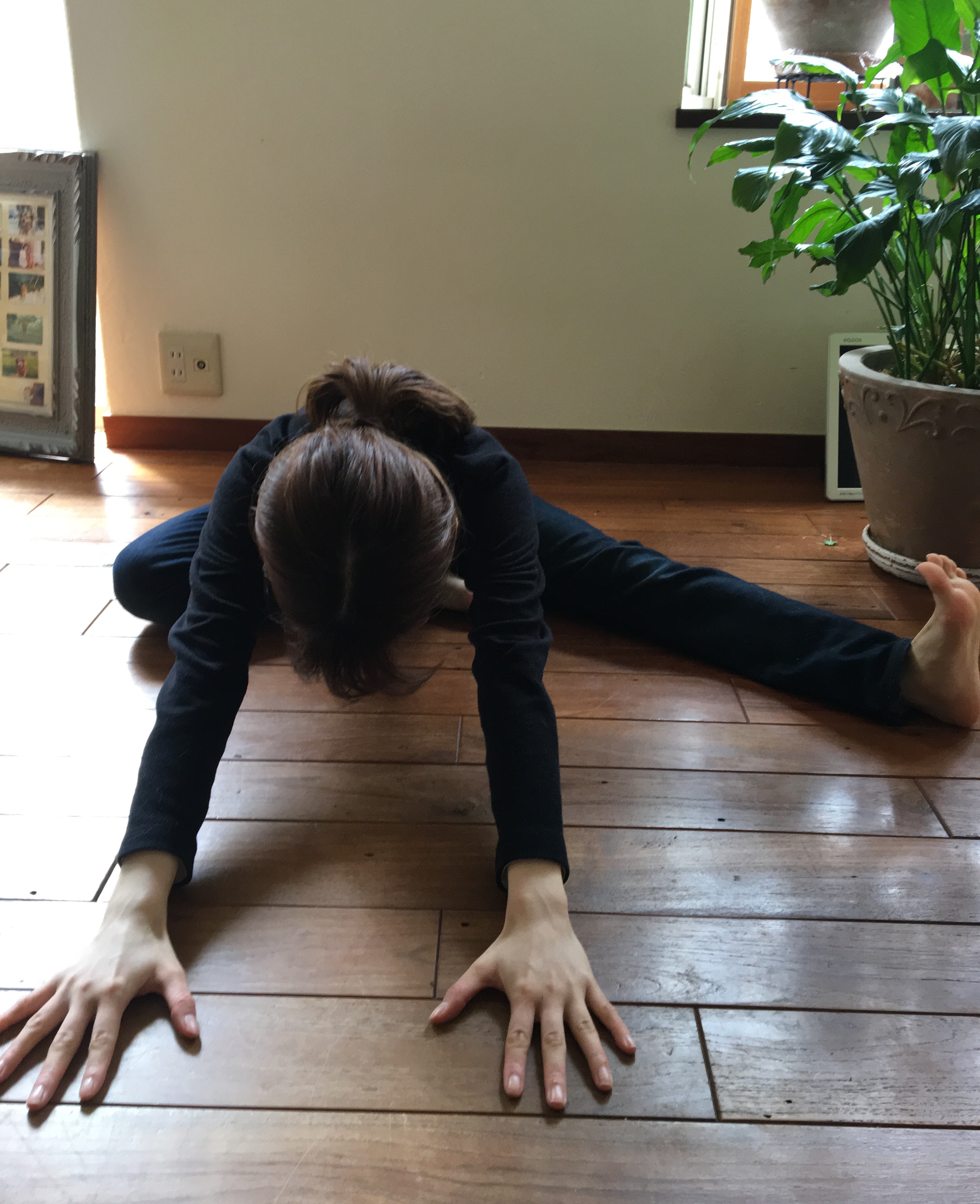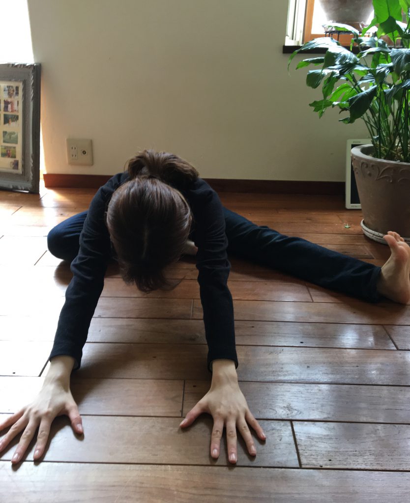 ・そのまま、まっすぐに前屈をします。