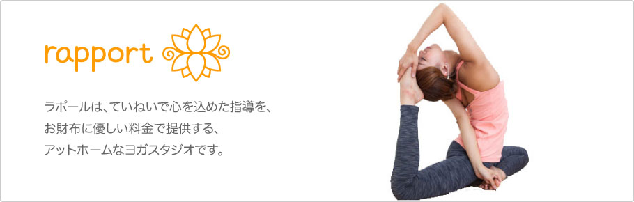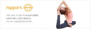 rapport (ラポール)は丁寧な指導に定評があるヨガスタジオで、柏店の他にも日暮里店と錦糸町店と大宮店が駅前にあり、各スタジオで少人数制の本格的なヨガを、アットホームな雰囲気の中で実践しています。