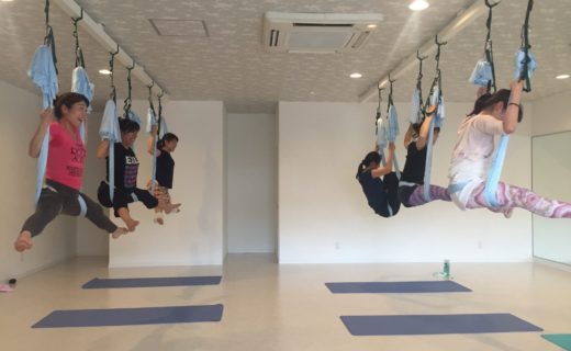 天井から吊られたハンモックに身を委ね、空中でポーズをとることで歪みの調整、ダイエット、体幹強化などの効果があります。