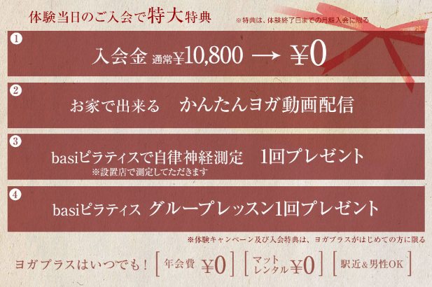 また当日入会で入会金通常10,800円→ゼロ円に!家で実践できるヨガ動画なども見れますよ!