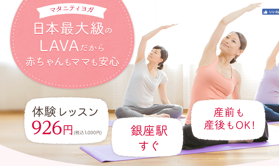 LAVA(ラバ)では数年前から、マタニティーヨガプログラムを開始し、それ専用のサイトページも公開しているくらい力を入れてます。またヨガ教室の最大手なのでプログラムとしても安心ですね!おすすめです!