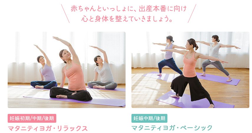 ※マタニティーヨガとは、妊活中、妊娠中、産後とそれぞれの期間に応じてプログラムが変わります。